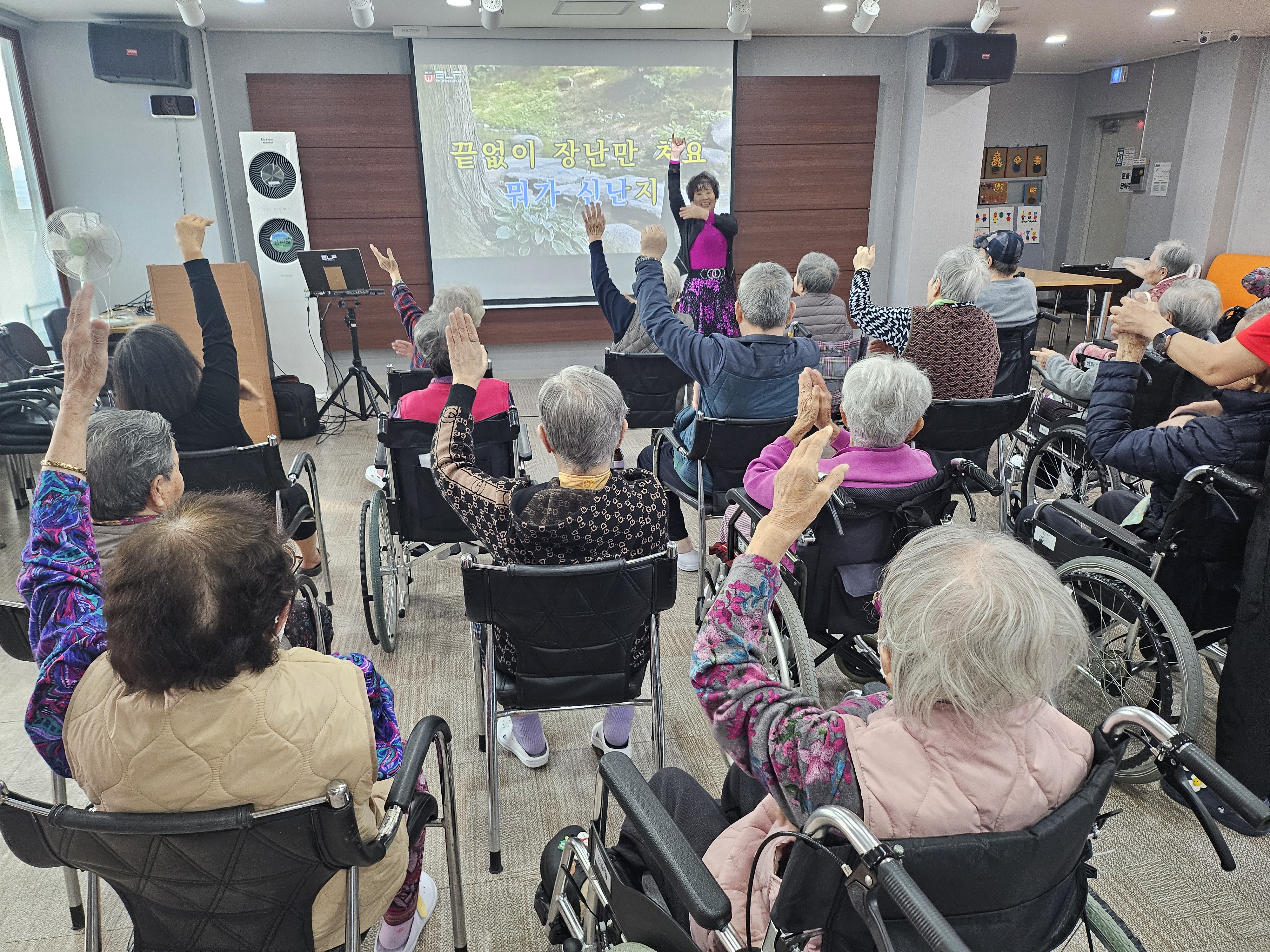 선생님과 같이 노래도 부르면서 흥겹게 율동도 하면서 신나는 시간을 보냈습니다