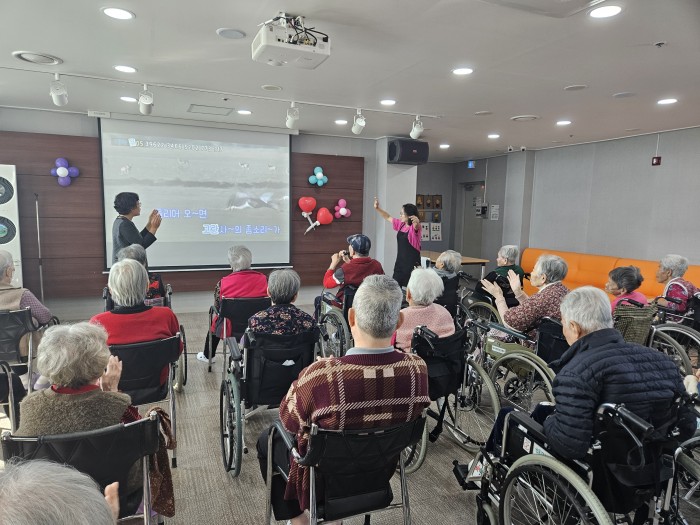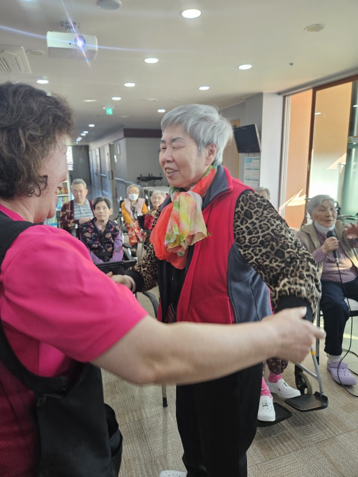 서로 손잡고 춤도 추시면서 하하 호호 웃으시면 재미나는 시간이었습니다